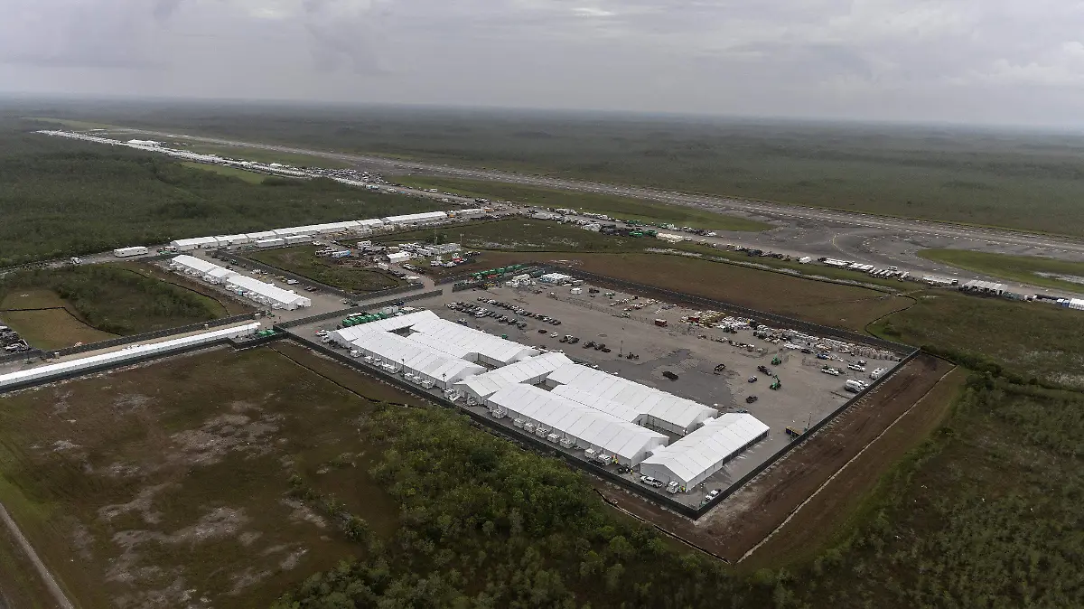 “Alligator Alcatraz” se localiza a unos 60 kilómetros de Miami, su ubicación en una zona conocida como el Parque Nacional de los Everglades imposibilita que los migrantes puedan escapar del lugar, ya que fuera de eso muros y miles de metros de alambrado hay animales salvajes que habitan el vasto humedal subtropical.