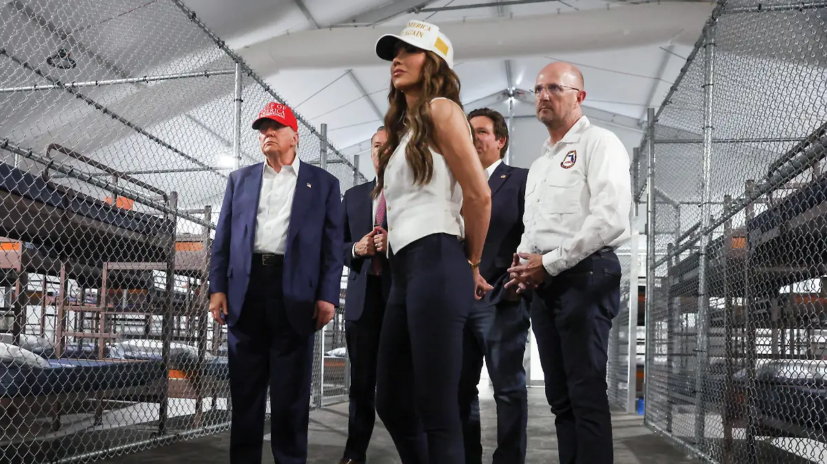 Donald Trump junto a la secretaria de Seguridad Nacional de Estados Unidos, Kristi Noem, llegaran al centro de detención que albergará hasta cinco mil migrantes a la espera de su deportación.