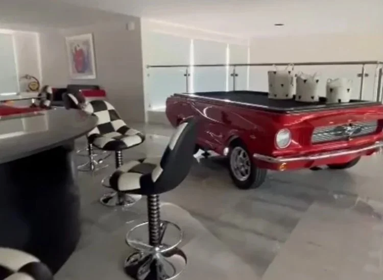 También tiene acabados de lujo y hasta una mesa de billar montada sobre la base de una réplica de un Ford Mustang.